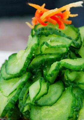 很多人喜歡在黃瓜里拌上一些豬頭肉、肘花等肉食,這種做法并不是十分科學。黃瓜無論在口味,還是在營養上都容易被其他的食物所影響,加入一些肉食,黃瓜的清淡口感會被肉味所掩蓋,在口味上大打折扣,食物中的脂肪含量、蛋白質、膽固醇含量都相對增高,很難再起到清涼解暑的作用了。