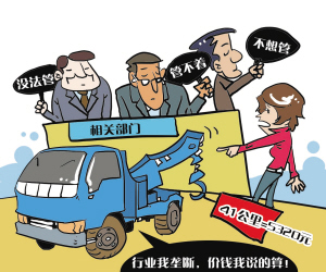 北京某女士自駕游,在高速路上不慎翻車,幸無大礙,只受了點輕傷。撥打110,交警到現場后又撥了120,120將該女士送醫院。交警經該女士同意(沒說價格)叫某救援公司將車拖走。該女士第二天去指定地點取車,人家告訴她先去交費,她拿到收費單時傻眼了:總共41公里,拖車費+吊車費+停車費總共5320元!回程,該女士請保險公司拖車,結果80公里,只花了800元拖車費。奇怪,同樣是拖車,差別咋這么大呢!保險公司說,這個價格是參照市場上的其他知名救援公司的價格定的。她問那家高價救援公司,對方答曰:公司有權自己定價。她又去交管部門討說法,被告知他們只管審核公司資質,價格不是他們管的。