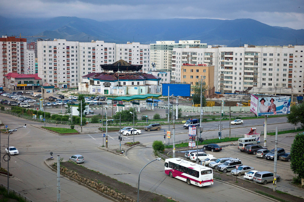 走在烏蘭巴托街上,隨處可見施工現場,8000美元一平米的豪華旅館,以及大幅的商業廣告。圖為蒙古首都烏蘭巴托全景