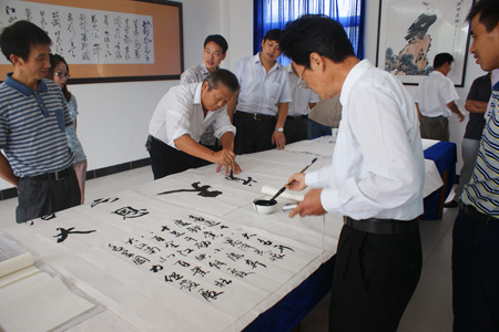 五橫素有“書畫之鄉(xiāng)”的美譽。清代,這里誕生了被譽為“千年一人”的書法大師鄧石如,如今,這里村村都有酷愛書畫的農(nóng)民,不少人還是市級以上書畫家協(xié)會的會員。為使這寶貴的文化藝術(shù)得到更好地傳承和弘揚,五橫鄉(xiāng)黨委政府高度重視文化建設(shè),高標(biāo)準(zhǔn)建設(shè)了具有五橫文化特色的綜合文化站,不定期組織書畫筆會、書畫展覽和書畫培訓(xùn),各中小學(xué)普遍開展書畫特色教育。此次書法活動的開展,進一步營造了五橫鄉(xiāng)喜迎黨的“十八大”召開的濃郁文化氛圍,為五橫農(nóng)民書畫愛好者們搭建了相互學(xué)習(xí)交流的平臺,激發(fā)了他們參與文化活動的積極性。(朱華兵劉曉燕)