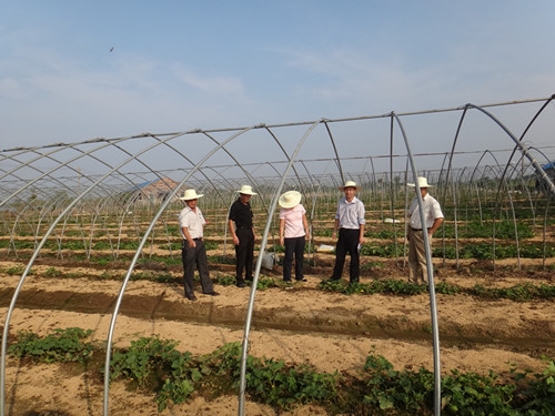圖為白澤湖鄉(xiāng)龍華村第一書(shū)記到該村占地250畝蔬菜基地指導(dǎo)時(shí)的情形。(顏嘉嘉方立正王丁寶)