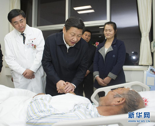習近平看望慰問中石化輸油管線泄漏引發爆燃事故傷員