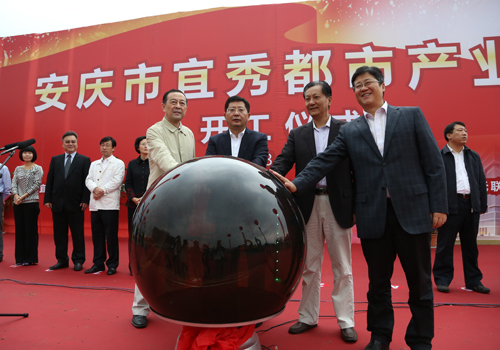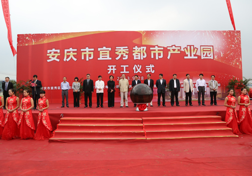 9月28日,安慶市宜秀都市產業園開工儀式在大橋開發區舉行。市長魏曉明,市人大主任康正和,市政協主席張金銳,市委常委、組織部長王佩剛,副市長陳愛軍、張君毅、董磊,市政府秘書長江興代出席開工儀式。宜秀區區委書記李順琪,區長婁雪松,區委副書記、組織部長程賢華,市發投公司董事長汪崴,北京新元聯創公司總經理蘇會麗,南通四建總經理俞國兵參加儀式并在主席臺見證。