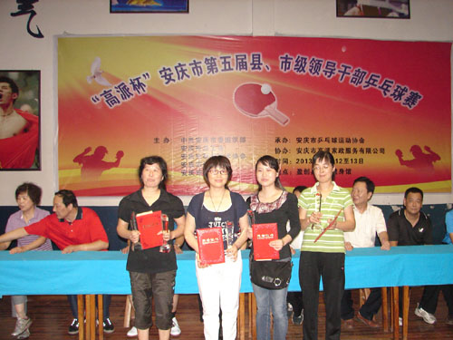 為慶祝中華人民共和國誕辰64周年,進一步發揮領導干部在推進全民健身、打造文化強市、構建和諧安慶中的率先垂范作用,在全社會深入倡導科學文明健康的新風尚,由安慶市委組織部、市總工會等主辦的“高派杯”安慶市第五屆縣、市級領導干部乒乓球賽今天下午圓滿落幕.宜秀區組建的男、女代表隊分別榮獲團體一、二名的佳績。(王四清)