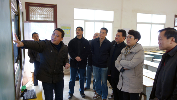 金燕一行詳細了解了該校“班班通”使用和持續(xù)發(fā)展情況,并和陪同的市、區(qū)領導及教育部門負責同志就深入推進基礎教育信息化建設工作進行了交談,并聽取了該校青年教師龍鵬飛利用“班班通”設備開展教學和關愛留守兒童情況匯報。