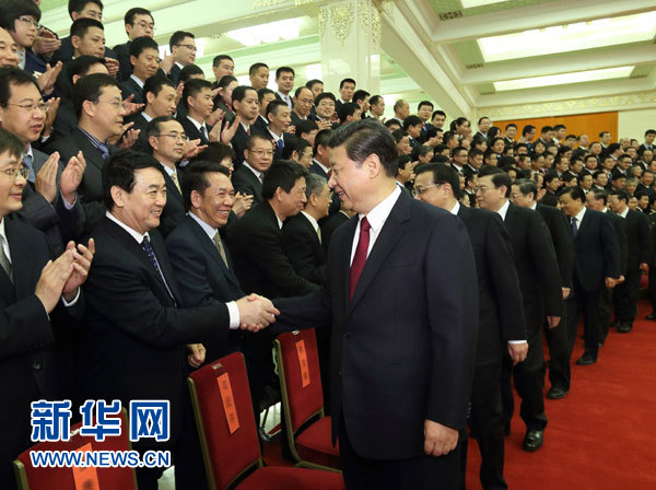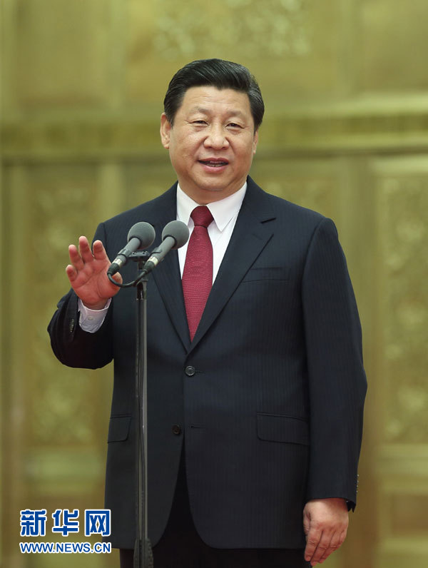 1月6日,黨和國家領(lǐng)導(dǎo)人習(xí)近平、李克強、張德江、俞正聲、劉云山、王岐山、張高麗等在北京人民大會堂會見探月工程嫦娥三號任務(wù)參研參試人員代表。這是習(xí)近平發(fā)表重要講話。新華社記者 蘭紅光 攝
