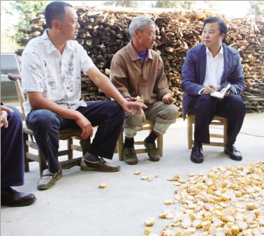 本文作者(右一)在安徽省金寨縣農家采訪。資料圖片