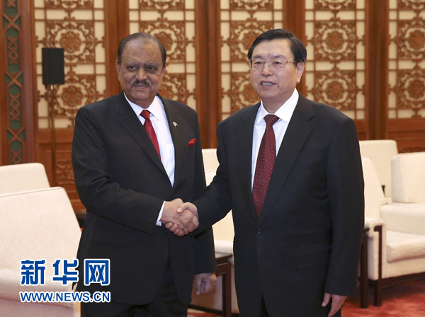 張德江會見巴基斯坦總統侯賽因