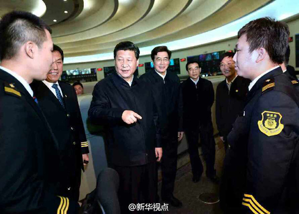 新華網(wǎng)北京2月25日電 據(jù)新華社“新華視點(diǎn)”微博報(bào)道,近年來,北京市軌道交通發(fā)展迅速。習(xí)近平來到北京市軌道交通指揮中心調(diào)度指揮大廳。寬闊的圓形大廳里,10多塊巨型顯示屏環(huán)繞四周,實(shí)時(shí)反映10多條軌道交通線的運(yùn)行情況。總書記來到地鐵10號(hào)線指揮臺(tái)前,和工作人員親切交談,了解客流量計(jì)算方法,察看線路運(yùn)行情況。