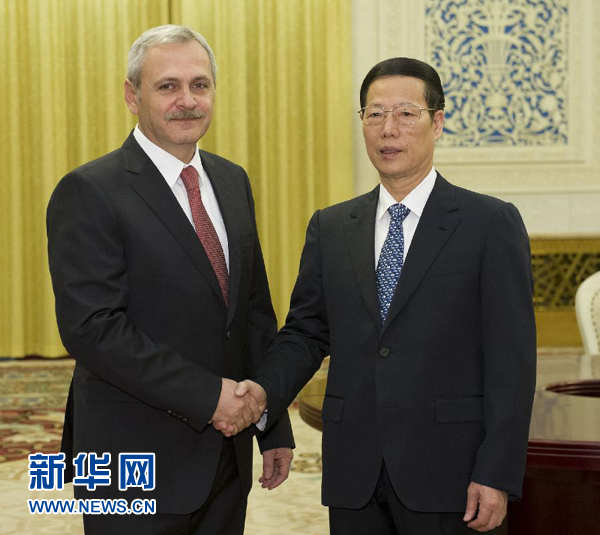 3月24日,國務院副總理張高麗在北京人民大會堂與羅馬尼亞第一副總理兼地區發展和公共行政部長德拉格內亞舉行會談。 新華社記者黃敬文攝
