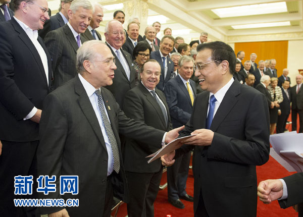 美國卡特彼勒公司董事長歐博赫曼、澳大利亞力拓集團(tuán)首席執(zhí)行官威爾士、美國聯(lián)邦快遞公司董事會(huì)主席施偉德、美國杜邦公司董事長柯愛倫、法國歐萊雅集團(tuán)董事長安鞏、美國陶氏化學(xué)公司董事長利偉誠、法國道達(dá)爾集團(tuán)董事會(huì)主席馬哲睿等分別就創(chuàng)新驅(qū)動(dòng)經(jīng)濟(jì)、物流業(yè)發(fā)展、知識(shí)產(chǎn)權(quán)保護(hù)、提高能效、外企在華投資經(jīng)營環(huán)境等提問。李克強(qiáng)一一作答。