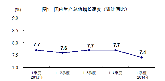 2013年各季度及2014年一季度GDP環比增速分別為1.5%、1.8%、2.3%、1.7%、1.4%。
