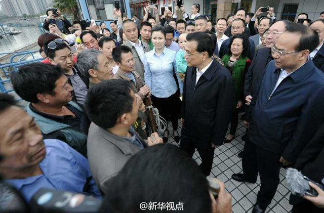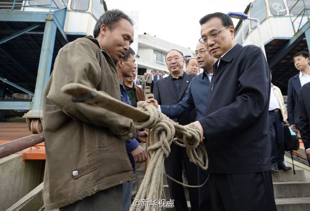 李克強(qiáng)總理27日在重慶萬州港乘船考察長江黃金水道。他來到輪船甲板上,認(rèn)真觀察港口基礎(chǔ)設(shè)施和航道建設(shè)現(xiàn)狀,與有關(guān)部門負(fù)責(zé)人共商長江黃金水道未來發(fā)展大計(jì)。李克強(qiáng)說,長江黃金水道是貫通東中西部、通航能力最強(qiáng)的航道,要用黃金水道串起長江經(jīng)濟(jì)帶“珍珠鏈”。