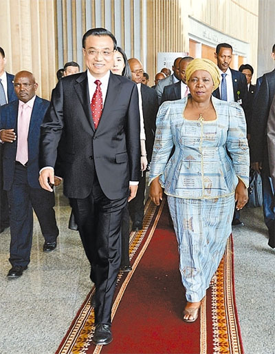 5月5日,國務(wù)院總理李克強在亞的斯亞貝巴非洲聯(lián)盟總部會見非盟委員會主席祖馬。