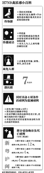 國家衛(wèi)計委前日發(fā)布的2014年版H7N9診療方案稱,H7N9禽流感病毒的具體傳播途徑可經(jīng)呼吸道傳播或密切接觸感染禽類的分泌物或排泄物而獲得感染;或通過接觸病毒污染的環(huán)境傳播至人;不排除有限的非持續(xù)的人傳人。