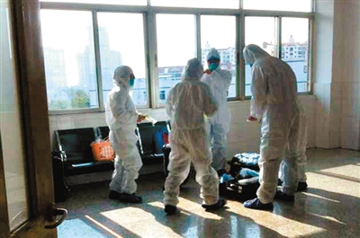 1月27日,廈門海滄第二醫(yī)院發(fā)現(xiàn)第一例疑似H7N9病例,醫(yī)護高度緊張,全副武裝隔離病人。圖/東方IC