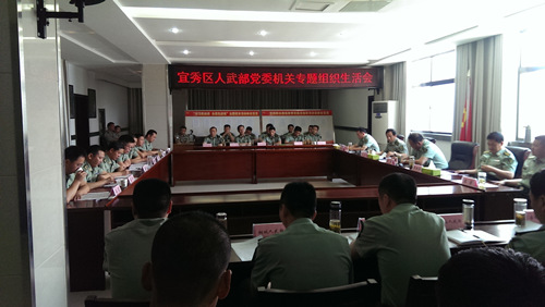 6月4日上午,宜秀區人武部黨委機關舉行專題組織生活會。市委常委、軍分區政委陳大林,軍分區司令張軍,軍分區參謀長章新華,軍分區政治處主任黃體沈,軍分區后勤部部長王奎到場指導,區委常委、人武部政委李亞波,人武部部長葉輝,人武部副部長王明理及各縣(市)區團級單位負責同志出席會議。