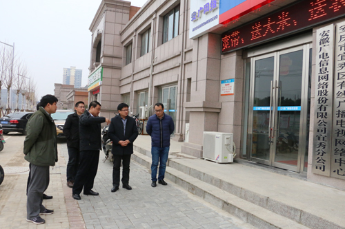 余永燦一行首先來到宜秀有線電視臺實地察看節目演播大廳、非編制作室和播控中心,仔細了解電視安全播出的值班值守情況,對工作人員表示親切慰問。我區被列為全省應急廣播建設試點縣(區)。余永燦對應急廣播建設試點工作十分關注。他專程到羅嶺鎮黃梅村實地察看了應急廣播建設試點情況,觀看了工作人員對公共服務信息化平臺的演示和操作,對此項工作予以肯定。余永燦還察看了黃梅村的室內電影放映室,了解全區室內電影放映室建設情況,對室內電影放映室實現村級全覆蓋表示滿意。余永燦一行還來到安廣網絡宜秀分公司,察看了營業大廳和機房的工作,聽取了有線電視網絡建設情況匯報,對我區的有線電視網絡發展表示贊許。