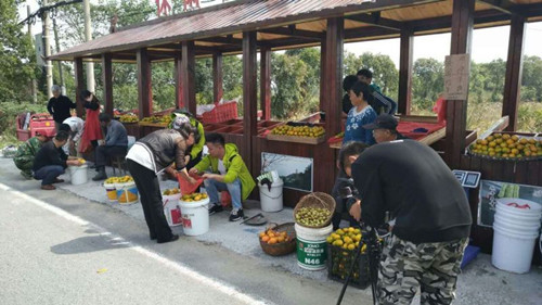 為改變這一現(xiàn)狀,去年6月份,鎮(zhèn)村兩級共同出資,每隔一段距離就建立一個(gè)攤位,攤位統(tǒng)一名稱為“水果驛站”,采用木質(zhì)結(jié)構(gòu),帶有徽派建筑風(fēng)格,每個(gè)攤位能容納8到10戶村民。為貼近當(dāng)?shù)芈糜螝庀ⅲA站外觀上通過文字圖片形式介紹了該鎮(zhèn)的風(fēng)土人情、物產(chǎn)資源、人文文化,還有一些關(guān)于社會(huì)主義核心價(jià)值觀內(nèi)容。如今,該鎮(zhèn)已經(jīng)有7座統(tǒng)一風(fēng)格的驛站,免費(fèi)供村民們使用。