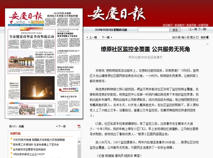 [安慶日報頭版] 燎原社區監控全覆蓋 公共服務無死角
