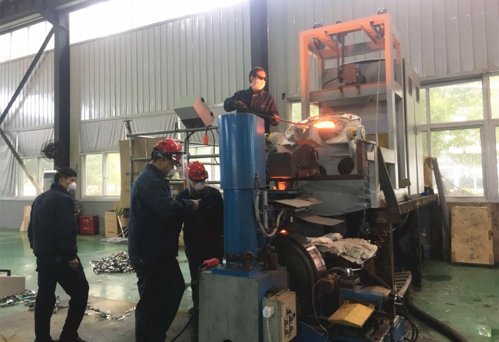 “這套設(shè)備2017年由我們自主研發(fā)成功,可實(shí)現(xiàn)熔煉、制帶、在線收取一體化生產(chǎn),智能終端控制系統(tǒng)可實(shí)現(xiàn)在線自動(dòng)調(diào)節(jié)。”公司綜合管理部部長(zhǎng)姚雙進(jìn)說(shuō),“其操作只需3人,重力式制帶機(jī)操作也只需3人,但算上后續(xù)收帶、卷曲、剪切、處理等人工,這套設(shè)備在生產(chǎn)效率大大提高的同時(shí),也大大減少了人工需求。”