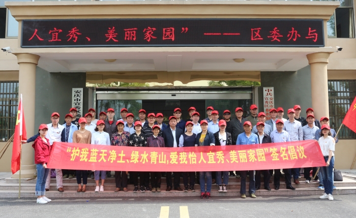 活動中,區委辦黨支部全體黨員還在鹿山村開展“護我藍天凈土、綠水青山,愛我怡人宜秀、美麗家園”志愿活動,在倡議條幅上簽名,并沿池塘溝渠清除沿岸雜草、垃圾,做生態環保的宣傳者、踐行者。