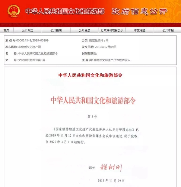 國家級(jí)非物質(zhì)文化遺產(chǎn)代表性傳承人制度是非物質(zhì)文化遺產(chǎn)保護(hù)的基本制度,是非物質(zhì)文化遺產(chǎn)保護(hù)體系的重要組成部分。自2008年起施行的《國家級(jí)非物質(zhì)文化遺產(chǎn)項(xiàng)目代表性傳承人認(rèn)定與管理暫行辦法》對(duì)于鼓勵(lì)和支持國家級(jí)非物質(zhì)文化遺產(chǎn)代表性傳承人開展傳承活動(dòng),規(guī)范國家級(jí)非物質(zhì)文化遺產(chǎn)代表性傳承人管理,發(fā)揮了重要作用。2011年,《中華人民共和國非物質(zhì)文化遺產(chǎn)法》頒布實(shí)施,從法律層面對(duì)非物質(zhì)文化遺產(chǎn)代表性傳承人制度進(jìn)行了確認(rèn),需要根據(jù)法律的規(guī)定和要求,修訂現(xiàn)有規(guī)章制度與法律相銜接。