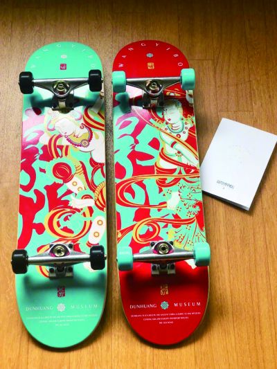 敦煌博物館寄給王一博的、飾以敦煌文化元素圖案的滑板