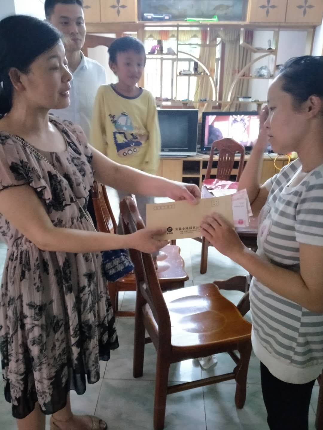 愛心企業心系困難兒童,播種愛與希望。社區愛心企業金隆園秉承奉獻社會、回饋社會的宗旨,積極響應政府號召,為困難人群提供各類社會幫扶,為困難兒童送上關愛。6月15日上午,金隆園食品股份有限公司負責人來到方杰倫家,詢問孩子目前的康復情況,并送上慰問金1000元。“自閉癥不是不治之癥,只要真誠陪伴小心呵護,總有一天他會好起來的, 康復要及時,不能‘三天打魚兩天曬網’,若有什么困難,讓我們大家一起來想辦法。”愛心企業負責人的話感染了我們,是啊,只要人人都獻出一點愛,世界將變成美好的人間。