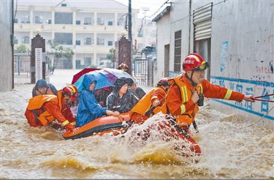 8日,江西都昌,救援人員正在轉移受困師生。