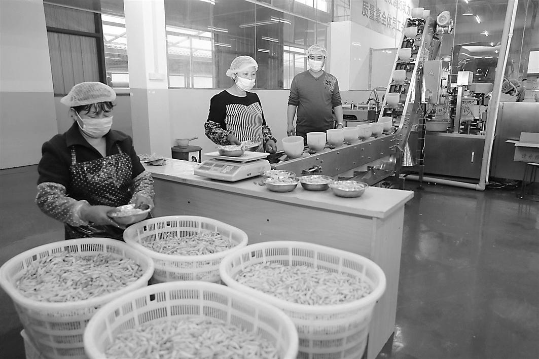 4月10日,安慶市宜秀區白澤湖鄉龍華村扶貧工廠內機器轟鳴,幾名工人在分揀、包裝泡椒。該村采取“公司+農戶+基地”模式,流轉800余畝土地種植泡椒,年銷售量達400噸,并通過自加工,實現了產供銷一條龍服務,促進鄉村產業融合發展,帶動村集體增收約14萬元。