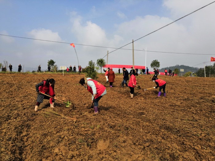 全體機關干部及部分群眾共百余人前往鮑沖湖村桃園基地開展義務植樹活動。該基地占地100畝,擬栽種4000株白桃、紅桃等果木打造百畝桃園,此舉不僅壯大集體經濟收入、帶動貧困戶就業,還為鄉村旅游增添一個新的景點。