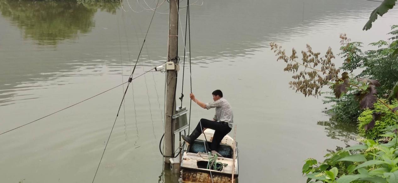 自鮑沖湖村遭受洪澇災害以來,村內部分居民生產用電停斷。許克安是鮑沖胡村2016年脫貧戶,今年發展養殖業共計30頭牛,因洪澇影響牛棚的生產用電停斷。電工對村組電路進行持續搶修,許克安深知電工忙不過來,自己略懂電工知識,于是在做好安全防護措施的情況下,自己動手下電箱,開展生產自救,減少財產損失。
