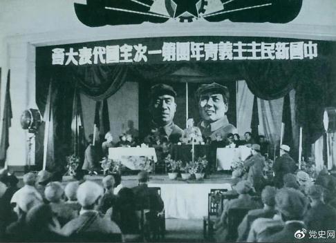 1949年4月11日,中國新民主主義青年團第一次全國代表大會召開。圖為大會會場。