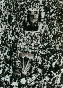 1956年7月13日,第一批國產“解放”牌汽車在長春第一汽車制造廠試制成功,結束了中國不能制造汽車的歷史。圖為7月14日,“解放”牌汽車開下生產線。