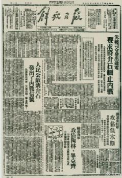 1945年8月,《解放日?qǐng)?bào)》刊登朱德發(fā)出的通電,要求蔣介石制止內(nèi)戰(zhàn)。