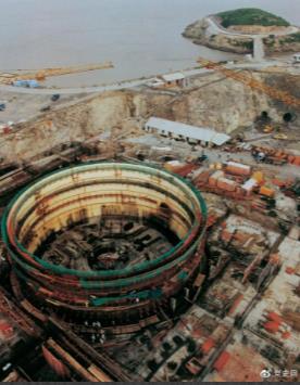 1991年12月15日,中國第一座自行設計、自行建造的核電站——秦山核電站并網發電。圖為建設中的秦山核電站。
