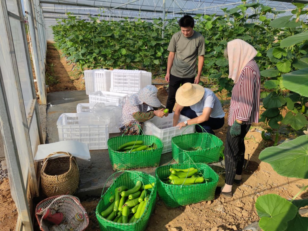 七月盛夏,位于安慶市宜秀區(qū)羅嶺鎮(zhèn)的羅嶺生態(tài)園蔬菜大棚內(nèi),一排排綠油油的黃瓜、瓠子掛滿枝蔓,葉片之間點綴著盛開的白的、黃的花朵,甚是喜人,豐收的喜悅和美好的希望在這里彌漫升騰,勞作的人們用他們的辛勤汗水迎來了屬于自己的“豐收節(jié)”。