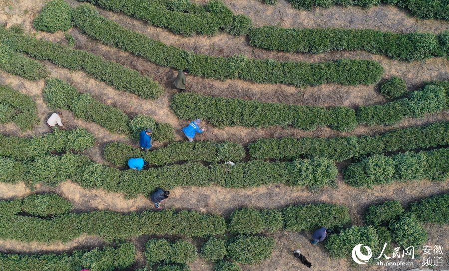 冬閑人不閑,茶園待春光。在安徽安慶市宜秀區(qū)五橫鄉(xiāng)曰公社區(qū),村民正在茶園里清理雜草。人民網(wǎng)張俊 攝