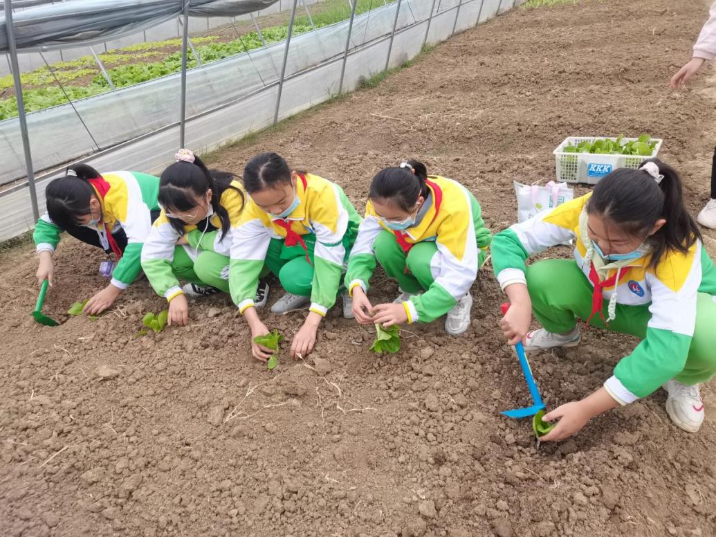 在大棚蔬菜基地內,安慶德元生態農業有限公司的技術人員向學生們詳細講述了勞動操作要點,將學生們按照5人一組分成若干組,開展小白菜栽種勞動實踐體驗。學生們仔細地傾聽著操作要點,一邊小心翼翼地拿著工具為農作物施肥、澆水,一邊咨詢著技術人員自己的操作是否規范,討論聲、澆水聲、工具碰撞地面聲不絕于耳。