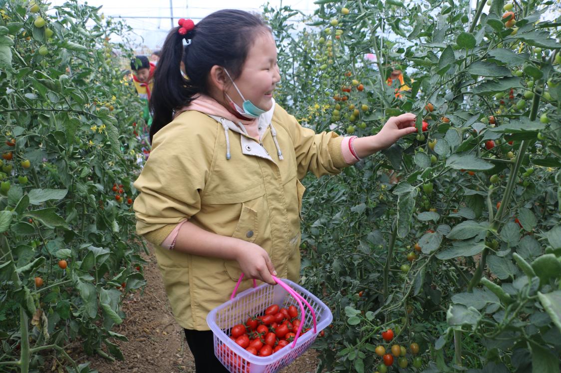 佇立在番茄棚內,技術人員言簡意賅地提醒著學生們采摘番茄的要領,隨后讓學生們親自體驗采摘的樂趣。學生們個個躍躍一試,手拎小籮筐,走進番茄的海洋,小手輕輕地采摘下小番茄,溫柔地放進籮筐內,那模樣生怕弄疼了小番茄。