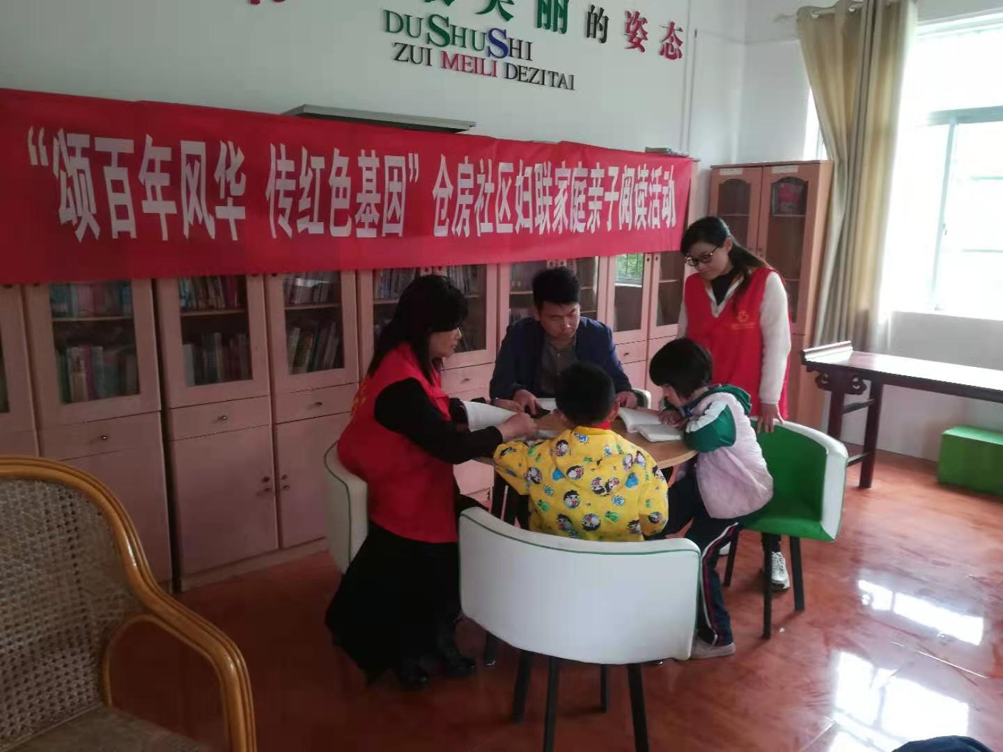 為慶祝中國共產(chǎn)黨建黨100周年,有效開展好黨史學(xué)習(xí)教育,深入貫徹落實(shí)習(xí)近平總書記關(guān)于“注重家庭、注重家教、注重家風(fēng)”重要指示和在黨史學(xué)習(xí)教育動員大會上的重要講話精神,4月23日,在世界讀書日來臨之際,倉房社區(qū)婦聯(lián)聯(lián)合楊橋鎮(zhèn)中心學(xué)校開展“頌百年風(fēng)華 傳紅色經(jīng)典”家庭親子閱讀活動。