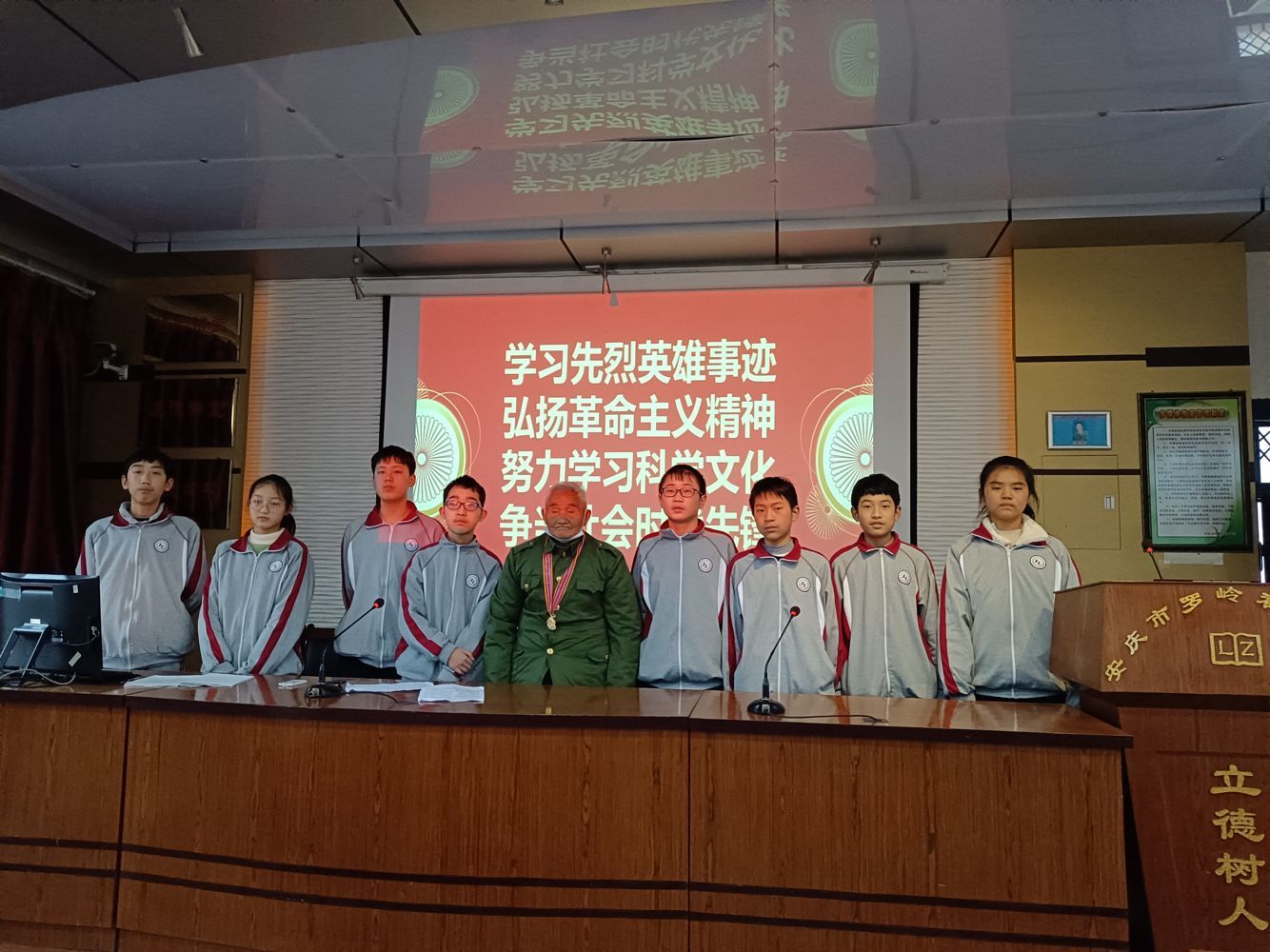 團課開展“聽英雄講故事(黨史)”。3月17日,羅嶺初中黨支部邀請志愿軍老戰士吳同書到校為學生上團課,講黨史。老英雄將自己親歷的戰斗歲月,參加“抗美援朝”作戰的光輝歷程,向新一代的青少年學生講述了自己紅色成長的軌跡,激發了每一位師生的愛國熱情通過重大黨史事件和重要黨史人物,開展黨史學習教育。