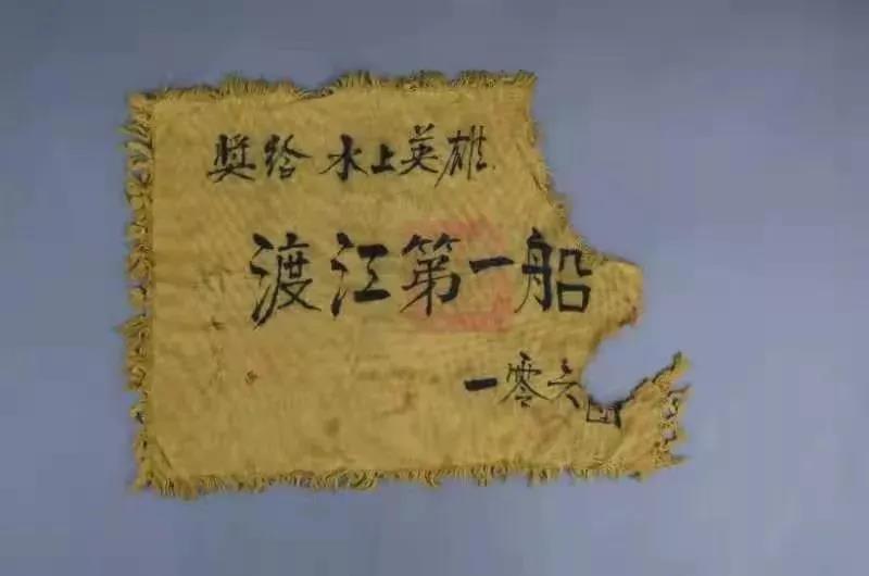 “我從小跟隨父親跑船捕魚維持生計,當年就住在在樅陽桂家壩,那個小漁村恰巧就是擇定的一個最早的起渡點,那一年的正月初二,家里的木船被解放軍征用。因為自小在水邊長大,水性好、水域情況熟悉,經過一段時間的訓練,我和父親成為第一批10條沖鋒船上的水手。出發前,部隊首長親自為每一名突擊隊員胸前都掛上了一個章。這個章是一個布條,上面寫著名字、年齡、出生年月等。而那一面‘渡江第一船’的錦旗,也正是此時交到我們手中。第一班船就是敢死隊,出發前,我們的棺材都準備好了,就是做好了隨時犧牲的準備。”陳老說道。在如今的合肥渡江戰役紀念館中有一面殘損的“渡江第一船”錦旗,它是解放軍第二野戰軍3兵團獎給支前船工陳文義、陳正華父子的榮耀。