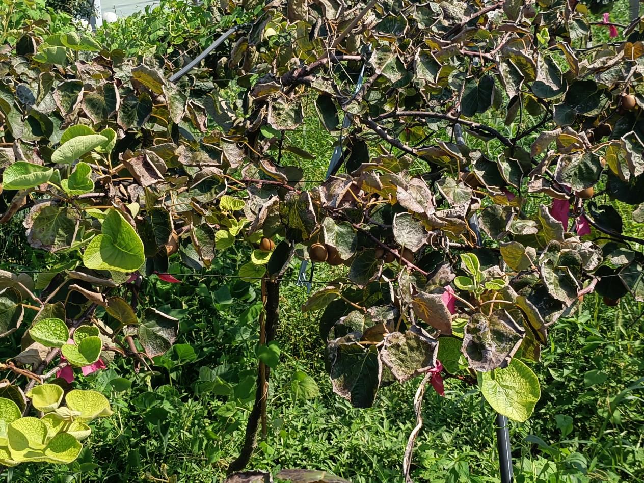 在龍華村中心組,坐落在楓龍公路旁邊的200畝獼猴桃田雖然依舊泛著綠意,但實際情況卻不容樂觀。不少地里早已看不見水跡,部分藤葉和獼猴桃已經出現死亡和干癟,從此可以看出,近期干旱的天氣,尤為缺水。