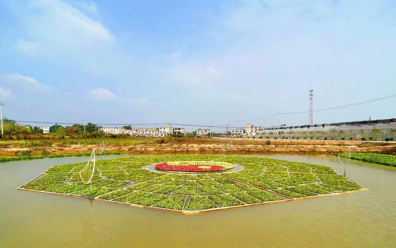“云上花園”采用風能推動進行旋轉,巧妙將水生蔬菜種植和解決農村人居環境問題相結合,在無土條件下發展水生種植蔬菜,不僅開辟了水上“土地”,還有效治理農村污水、黑臭水體污染,凈化水質,改善生態環境,有力推動產業更綠色、更高效地發展。