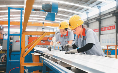 近期,甘肅省定西市隴西縣的鋁冶煉及加工企業加緊生產,趕制國內外客戶的訂單。圖為隴西縣一家鋁業公司的員工在車間內忙碌。