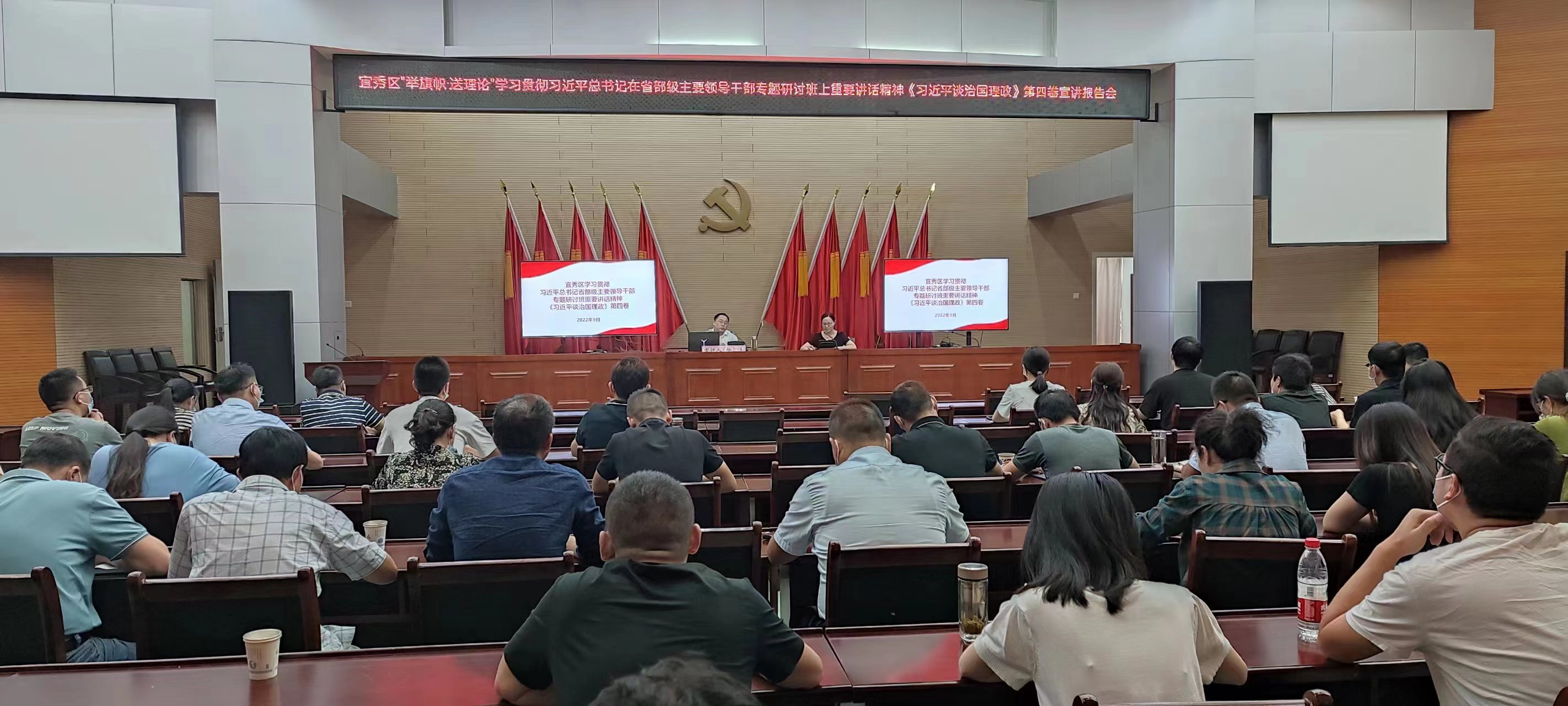 9月30日下午,宜秀區“舉旗幟·送理論”宣講報告會走進區直機關,區直工委及所屬各單位黨組織黨員,北部新城建設管理局黨工委、區教體工委、區住建局黨委、區農業農村局黨委、區水利局黨委、區供銷社黨委、區應急局黨委、大龍山林場黨工委共計150余名黨員、入黨積極分子參加報告會。
