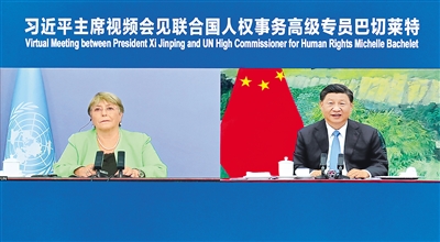 5月25日,國家主席習近平在北京以視頻方式會見聯合國人權事務高級專員巴切萊特。