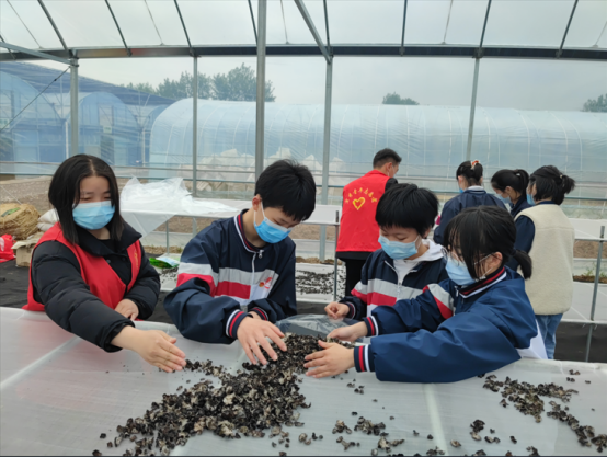中午1點30分,活動在食用菌生產基地準時開始,首先是技術人員向學生團員及青年志愿者們講解木耳從菌棒到成品的培育、采摘等技術。隨后,在工作人員的指導下,團員學生、青年志愿者們分工合作,幫助村集體進行木耳采摘、分揀、裝袋,種植巨菌草等。
